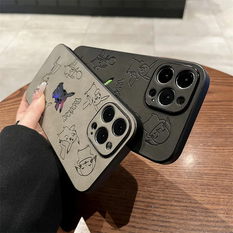 Cartoon Pikachu Faux Leather Laser Phone Case For iPhone 15 14 13 12 11 16 Pro Max XS XR X 7 8 Plus Shockproof Protective Cover