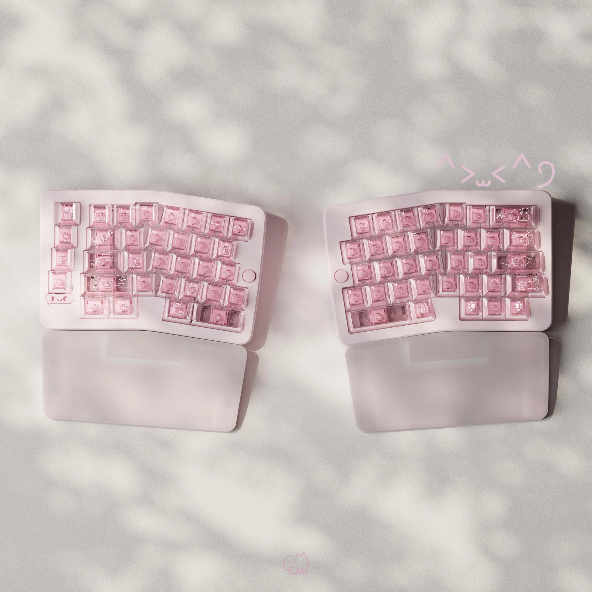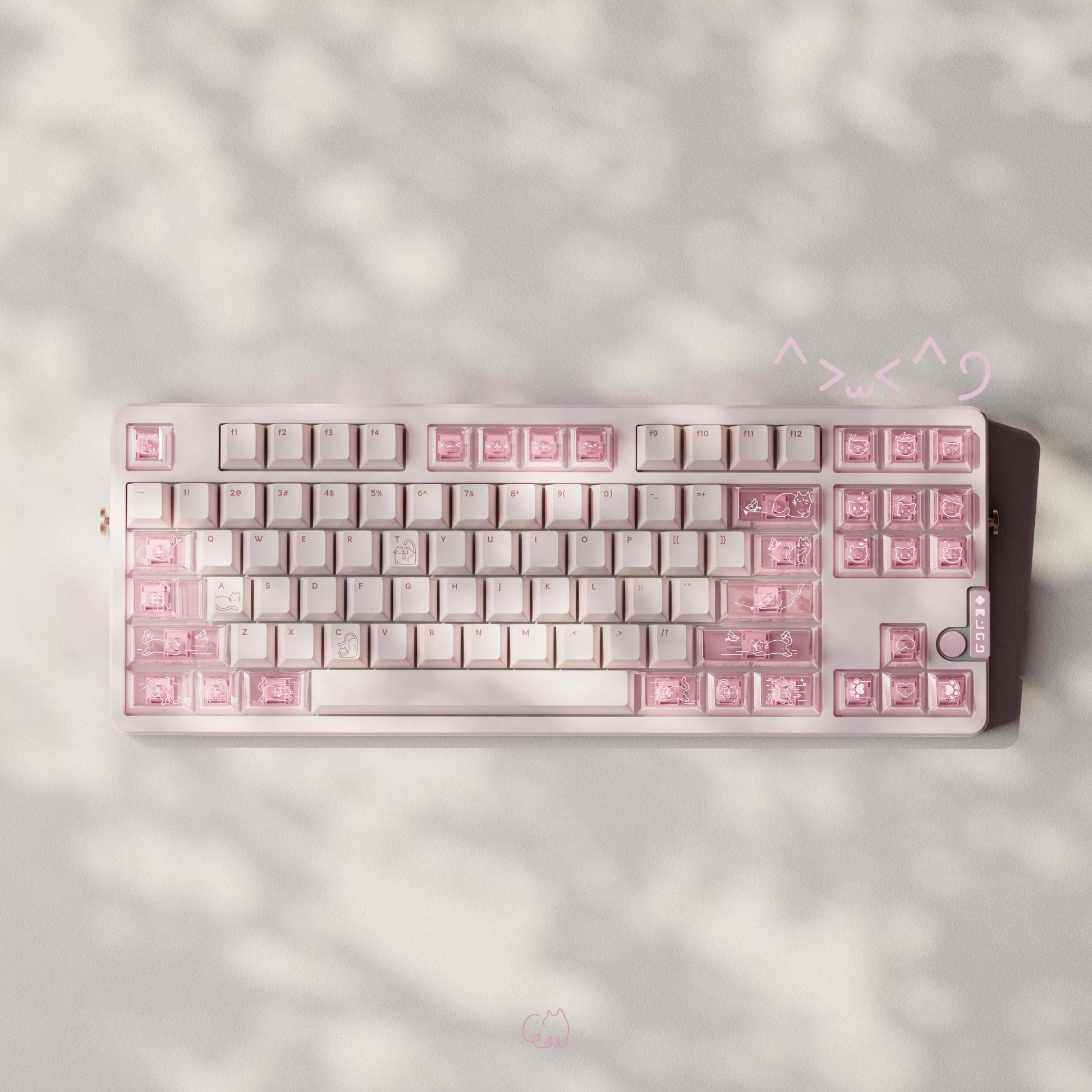 Cute Jelly Cat Theme Keycaps 140 keys PBT+PC Keycaps Pink Cherry Profile Custom Key Caps for Mechanical Keyboard Gift PC Gamer