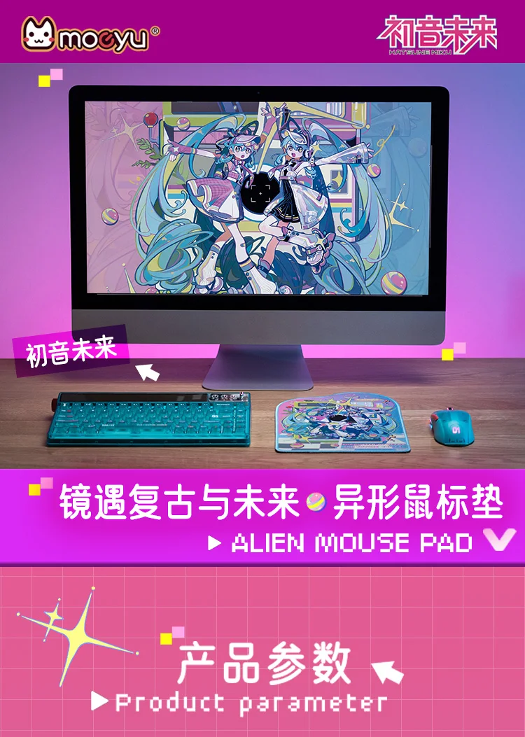 Moeyu Hatsune Miku Encounter of Retro and Future Mouse Pad Mousepad Vocaloid Gamer Desk Mat Keyboard Mat Cartoon Anime Playmat